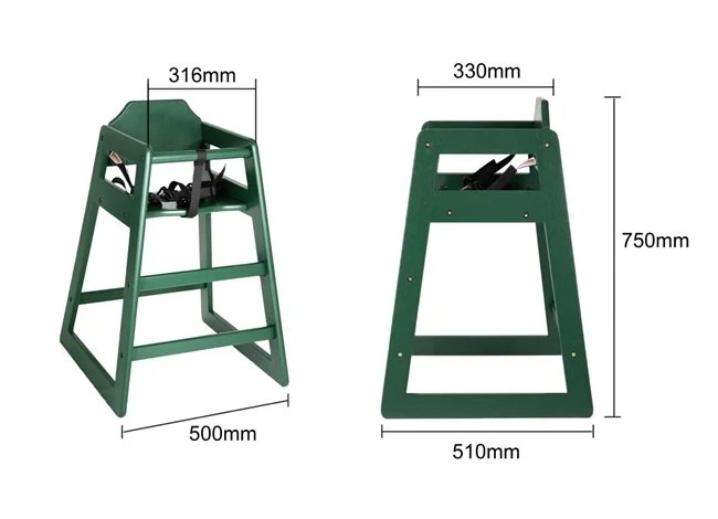This sturdy high chair provides a secure, stable place for young children to sit while eating.