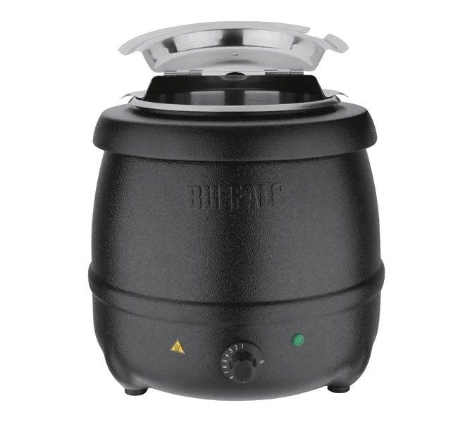 Serve tasty, hearty homemade soup with this black soup kettle from Buffalo. With enough room to hold up to 10 litres, the kettle offers a huge capacity, ideal for keeping up with demand in busy buffets, farm shops, events or cafes.