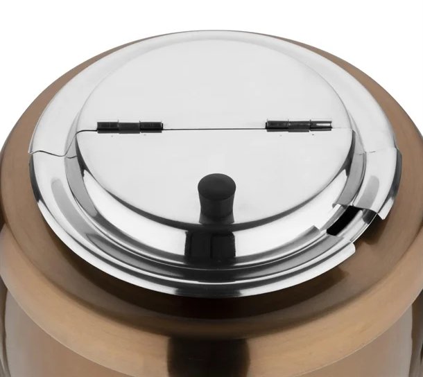 Serve tasty, hearty homemade soup with this copper soup kettle from Buffalo. With enough room to hold up to 10 litres, the kettle offers a huge capacity, ideal for keeping up with demand in busy buffets, farm shops, events or cafes.