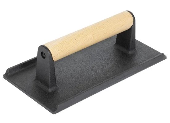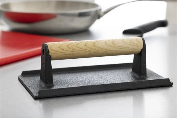 Constructed from high quality cast iron, the steak weight presses meats to the grill to prevent curling and reduce serving time.