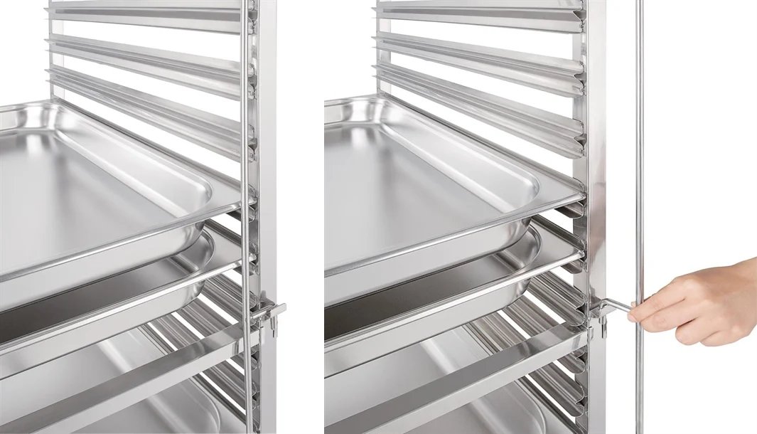 GN lock to prevent trays slipping during transportation