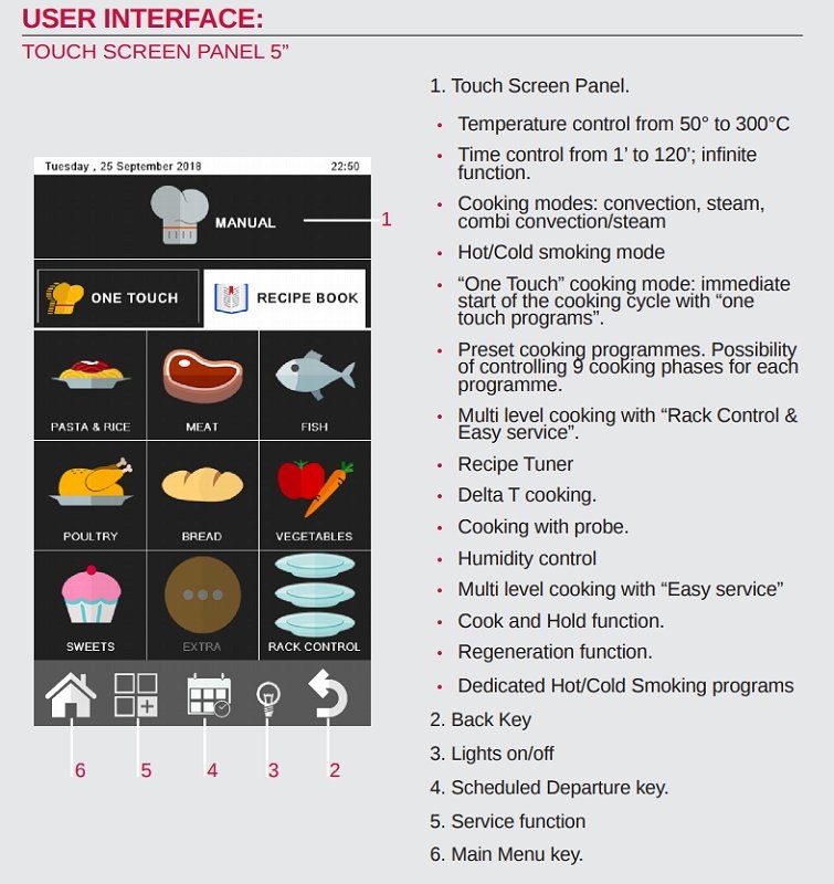 Fitted with a USB port - this allows menus to be uploaded into the oven from a USB stick, it also allows quick loading of updated software..