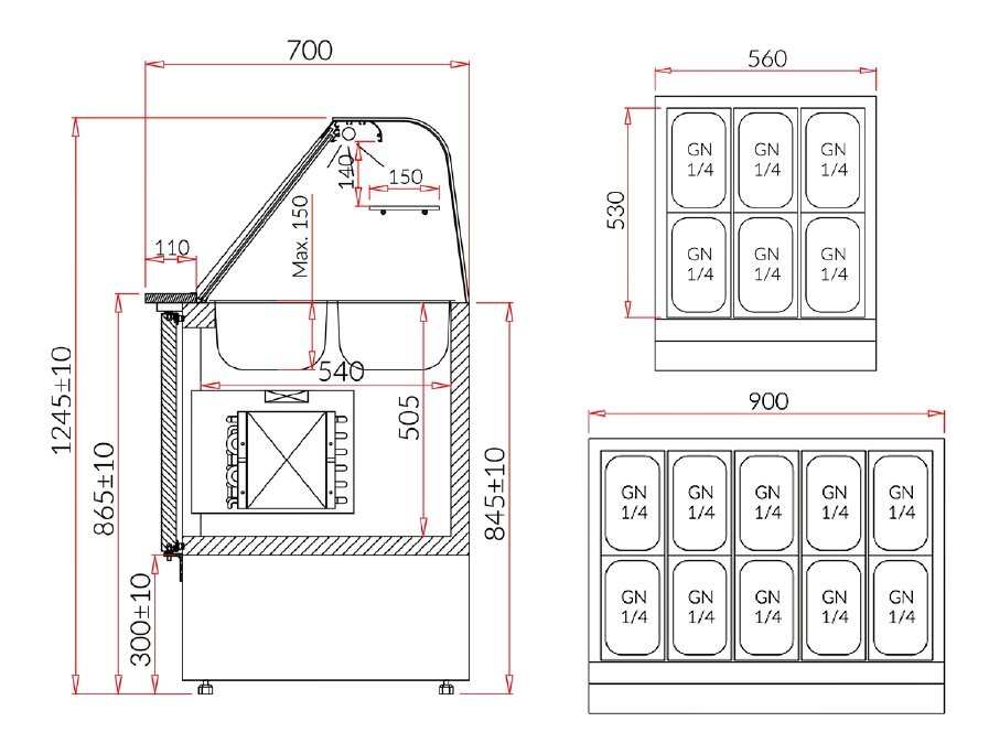 IBIZA90 - W900mm - Cap: 10 x 1/4GN - Power 2.9kW