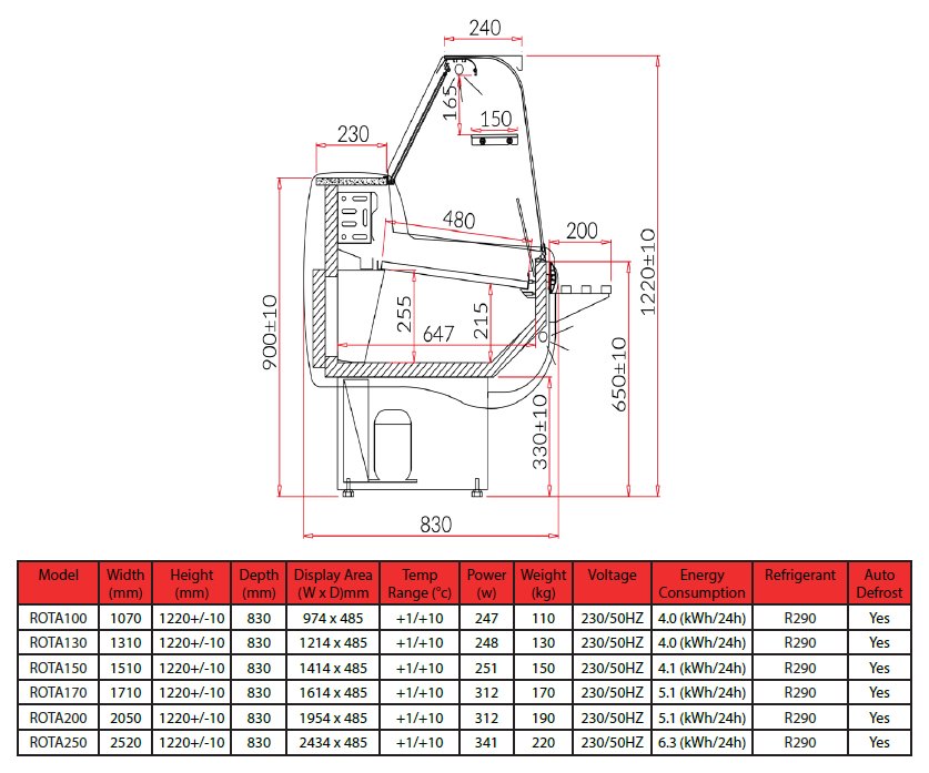 Available in 6 Widths - Depth 830 x Height 1220+/-10mm