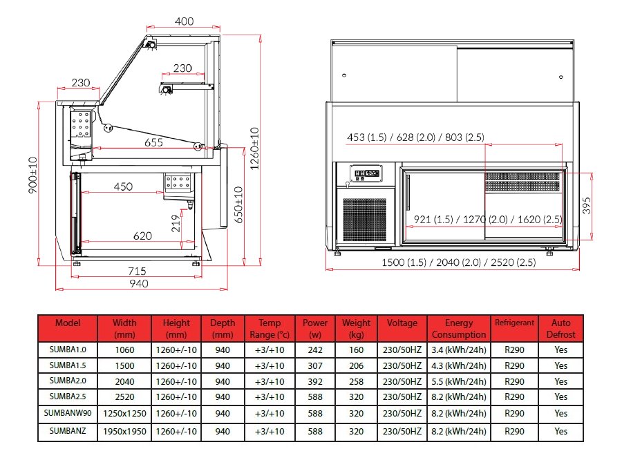 Available in 4 Widths - Depth 940 x Height 1260+/-10mm