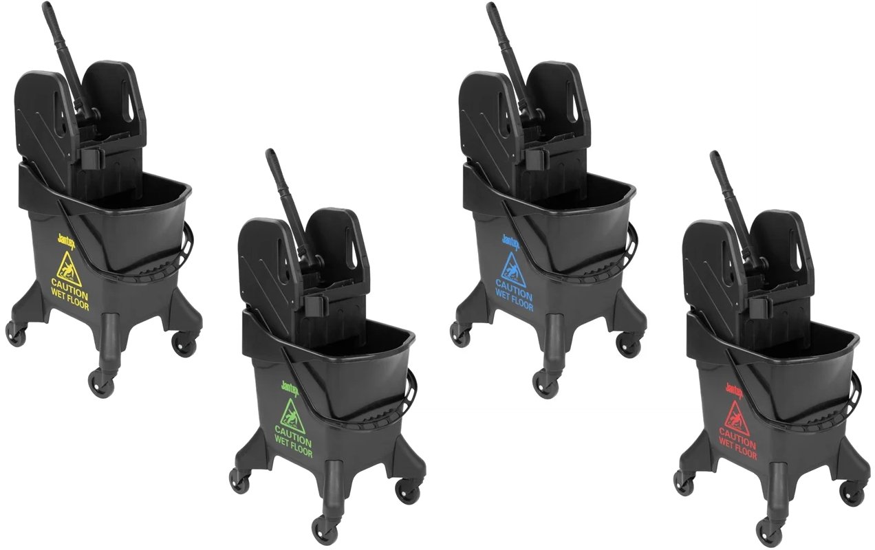 For added convenience, the bright "Caution Wet Floor" marking makes this Jantex mop bucket ideal for use in a colour-coded cleaning system to prevent cross-contamination.
