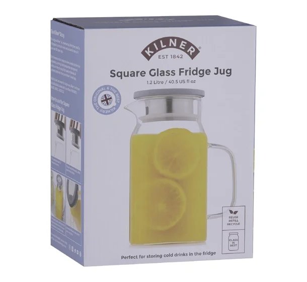 Pour drinks effortlessly and in style with this Kilner 1.2Ltr square fresh store jug. Combining practicality and elegance, the borosilicate jug features a lightweight glass design and square corners. These ensure accurate pours each time with no spills, so you can serve guests quickly while keeping your surfaces clean.