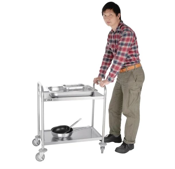Strong and durable, the small size two tier Vogue clearing trolley is a great solution for transporting items between areas. Constructed from stainless steel throughout, the trolley is strong, durable and easy to clean.