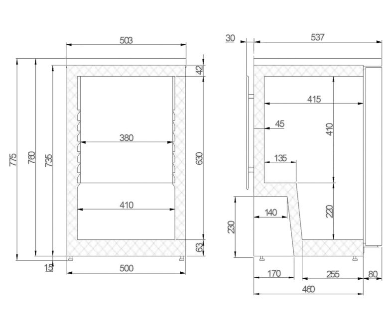 Tinted glass door. Curved profile door. Lock fitted. LED interior light. Adjustable shelves. Digital temperature display. Temp range: +5 to +10°C. Static cooling. Adjustable feet. Climate class 3. Power 13amp.