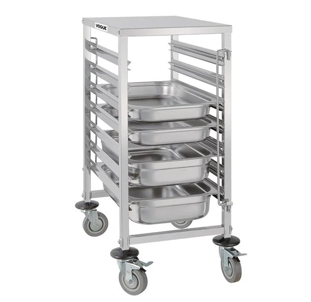 Seven shelves designed to hold 1/1 GN gastronorm pans securely