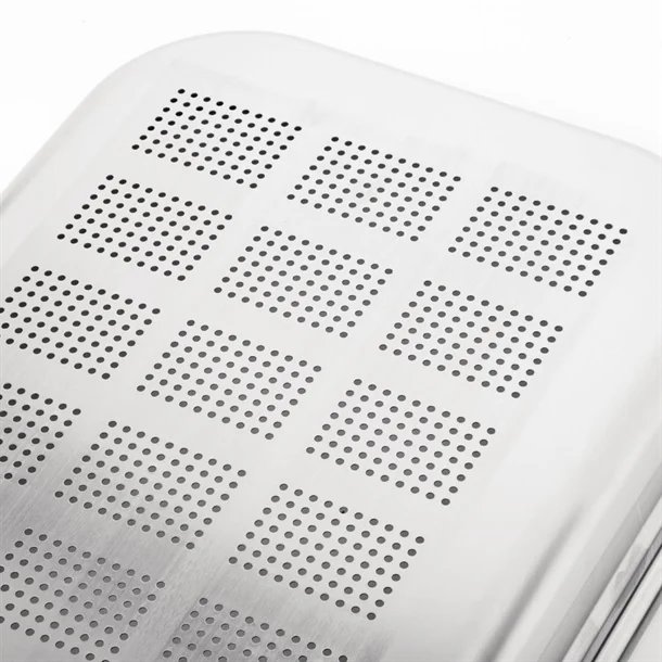 Perforated gastronorm tray, ideal for cooking, steaming and serving vegetables.