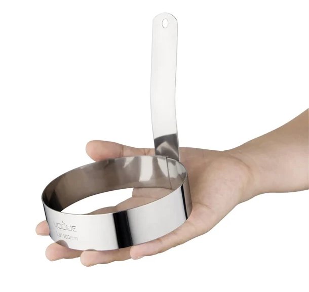 The hole at the top of the handle allows for easy storage and hanging, keeping the egg ring close-to-hand for your kitchen staff.