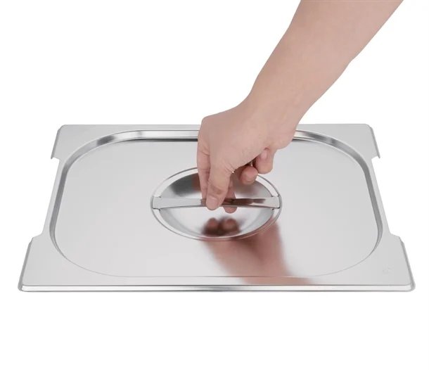 Featuring notches on the side, this allows for handles on the Gastronorm pan to fit with the lid.
