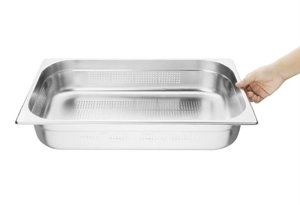 Perforated gastronorm tray, ideal for cooking, steaming and serving vegetables.